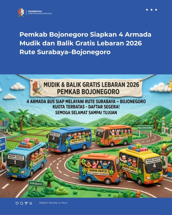 Pemkab Bojonegoro Siapkan 4 Armada Mudik dan Balik Gratis Lebaran 2026 Rute Surabaya–Bojonegoro