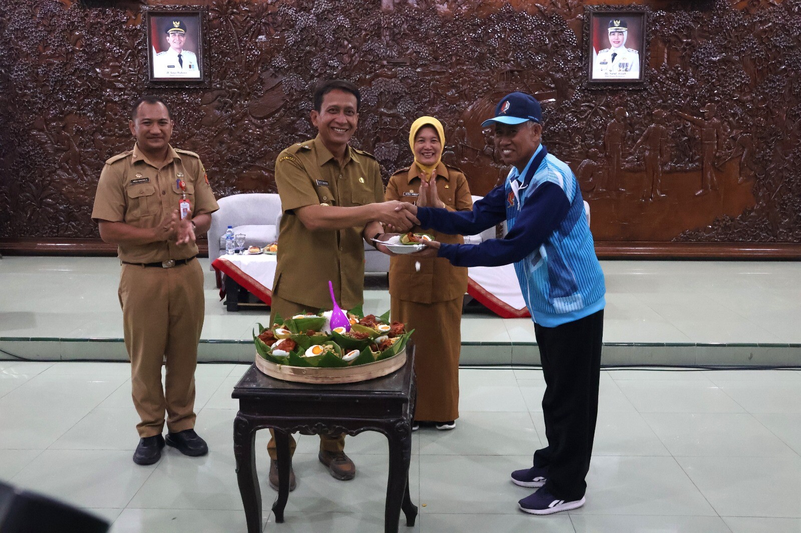 Penghargaan secara simbolis diberikan oleh Bupati Wahono bersama Wakil Bupati Nurul Azizah beserta jajaran. Dilanjutkan pemotongan tumpeng sebagai simbolis resmi serta ucapan rasa syukur dalam memperingati Hari Olahraga Nasional ke-42. Acara peringatan dilakukan dengan sederhana dengan rasa kebersamaan olahraga.[del/nn]