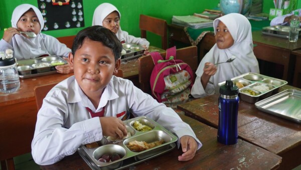 Menu MBG yang berstandar gizi dinikmati para siswa di SDN Kepatihan, Kabupaten Bojonegoro/Foto: Diba