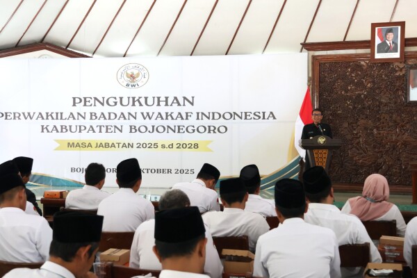 Bojonegorokab.go.id – Pemkab Bojonegoro melalui Bagian Kesejahteraan Rakyat (Kesra) menggelar acara pengukuhan Perwakilan Badan Wakaf Indonesia (BWI) Kabupaten Bojonegoro masa jabatan 2025 - 2028, Selasa (7/10/2025) di Pendopo Malowopati. Pengukuhan ini berkaitan dengan dokumen keabsahan wakaf karena penggunaannya yang bersinggungan langsung untuk kepentingan masyarakat.