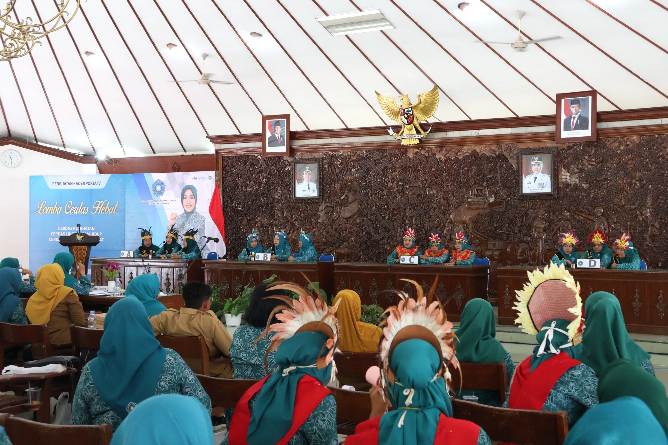 Bojonegorokab.go.id - Sorak semangat memenuhi Pendopo Malowopati Pemkab Bojonegoro, Senin (13/10/2025) pagi. Dengan penuh percaya diri, para ibu kader PKK saling adu cepat menjawab pertanyaan seputar kesehatan, gizi, dan keluarga sejahtera dalam Lomba Cerdas sehat PKK Kabupaten Bojonegoro 2025.