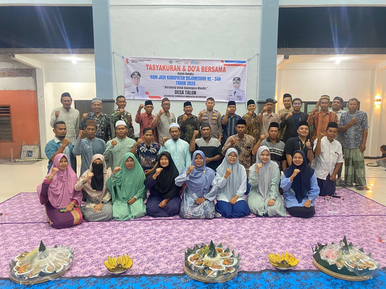 Bojonegorokab.go.id - Rangkaian peringatan Hari Jadi Kabupaten Bojonegoro (HJB) ke-348 tahun 2025 ini sedikit berbeda dari tahun sebelumnya. Tidak ada ‘Grebeg Berkah’ di Alun-alun Bojonegoro, namun tasyakuran dan doa bersama dilaksanakan Minggu (19/10/2025), di seluruh desa dan kelurahan. Salah satunya digelar Desa Talun, Kecamatan Sumberrejo.