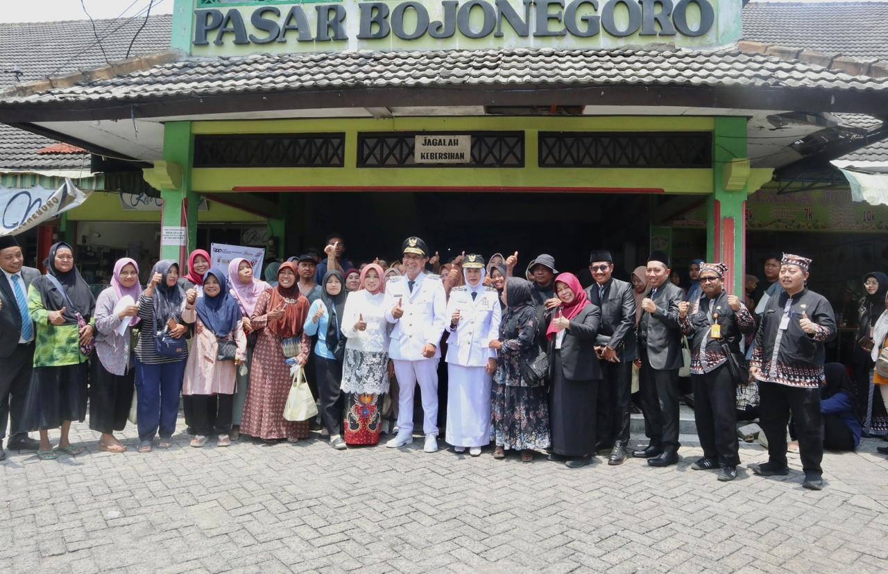 Para pedagang rengkek usai menerima bantuan modal dari Pemkab Bojonegoro, Senin (20/10/2025)/ Foto: Diba