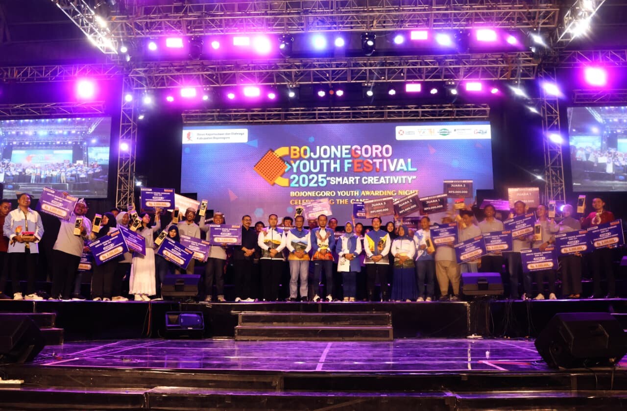 Bojonegorokab.go.id - Suasana malam di Gedung Olahraga (GOR) Utama Bojonegoro, Sabtu (25/10/2025), begitu hidup. Dengan antusias, warga mengikuti puncak acara Bojonegoro Youth Festival (BYF) 2025 dengan penampilan spesial artis terkenal Bondan Prakoso.