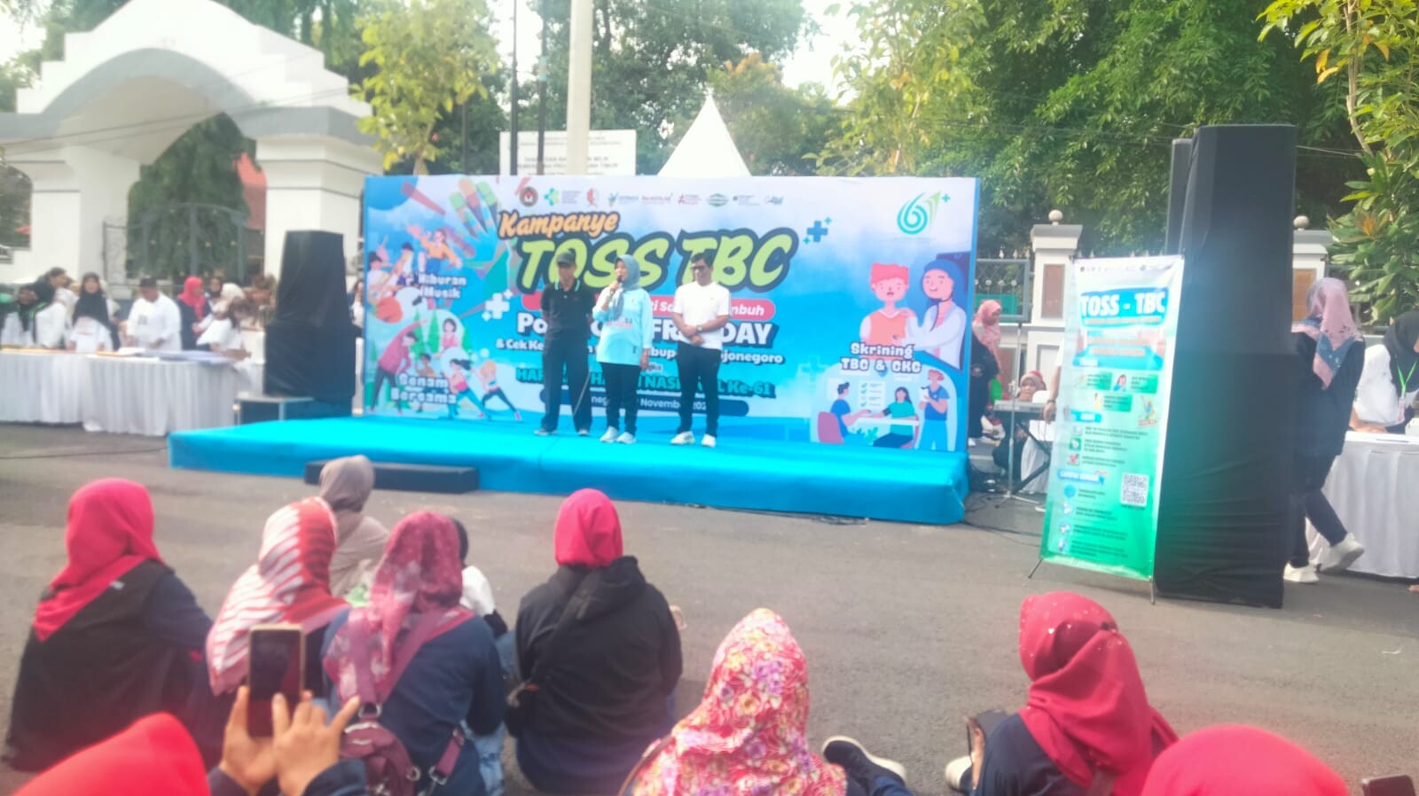 Bojonegorokab.go.id - Dinas Kesehatan Kabupaten Bojonegoro menggelar kampanye Temukan dan Obati Sampai Sembuh (TOSS) TBC, Minggu (9/11/2025). Kegiatan edukatif ini cukup menarik karena digelar di alun-alun saat Car Free Day (CFD).