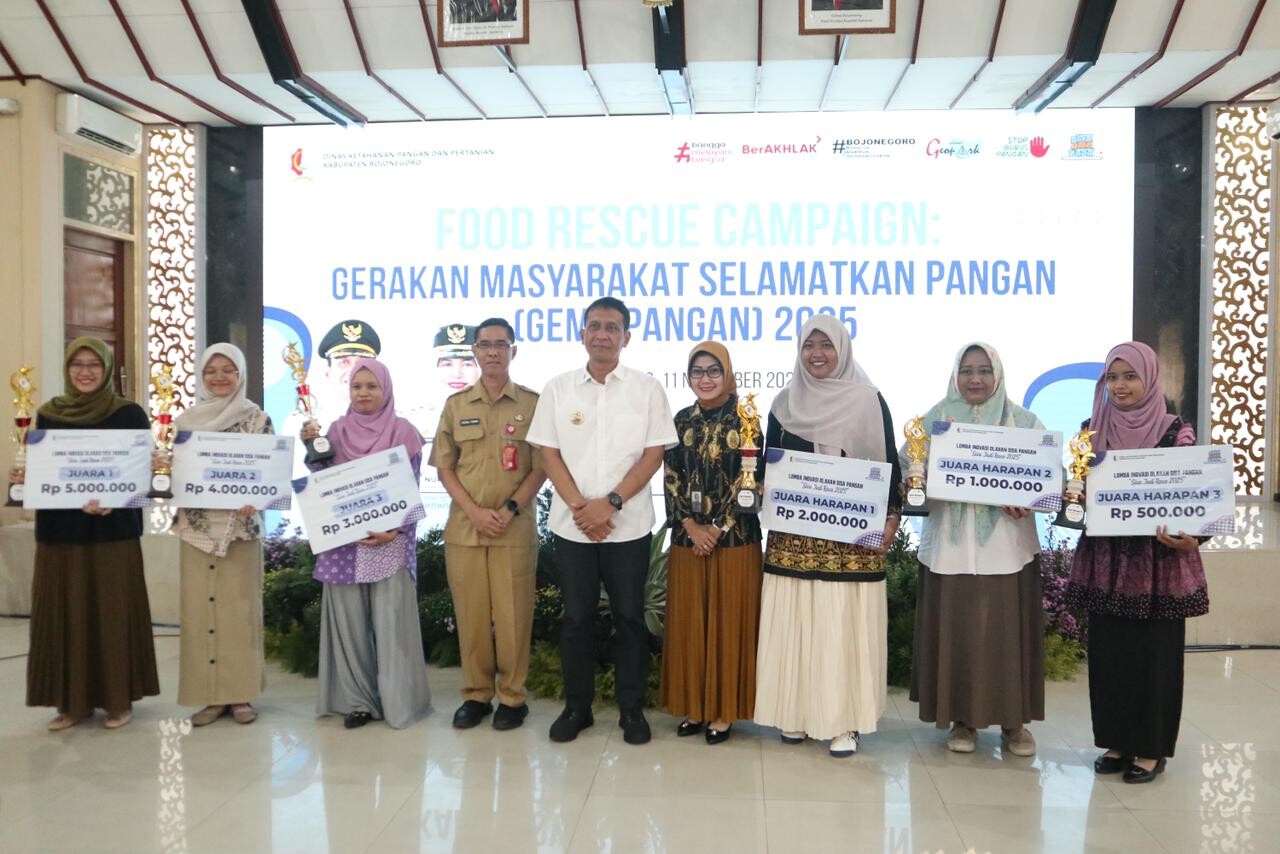 Bojonegorokab.go.id – Semangat peduli pangan dan lingkungan menggema di Ruang Angling Dharma, Selasa (11/11/2025), dalam kegiatan Food Rescue Campaign: Gerakan Masyarakat Selamatkan Pangan (Gema Pangan) 2025. Kegiatan yang diinisiasi Dinas Ketahanan Pangan dan Pertanian Kabupaten Bojonegoro ini diawali dengan pemberian penghargaan kepada para pemenang Lomba Inovasi Olahan Sisa Pangan 2025.