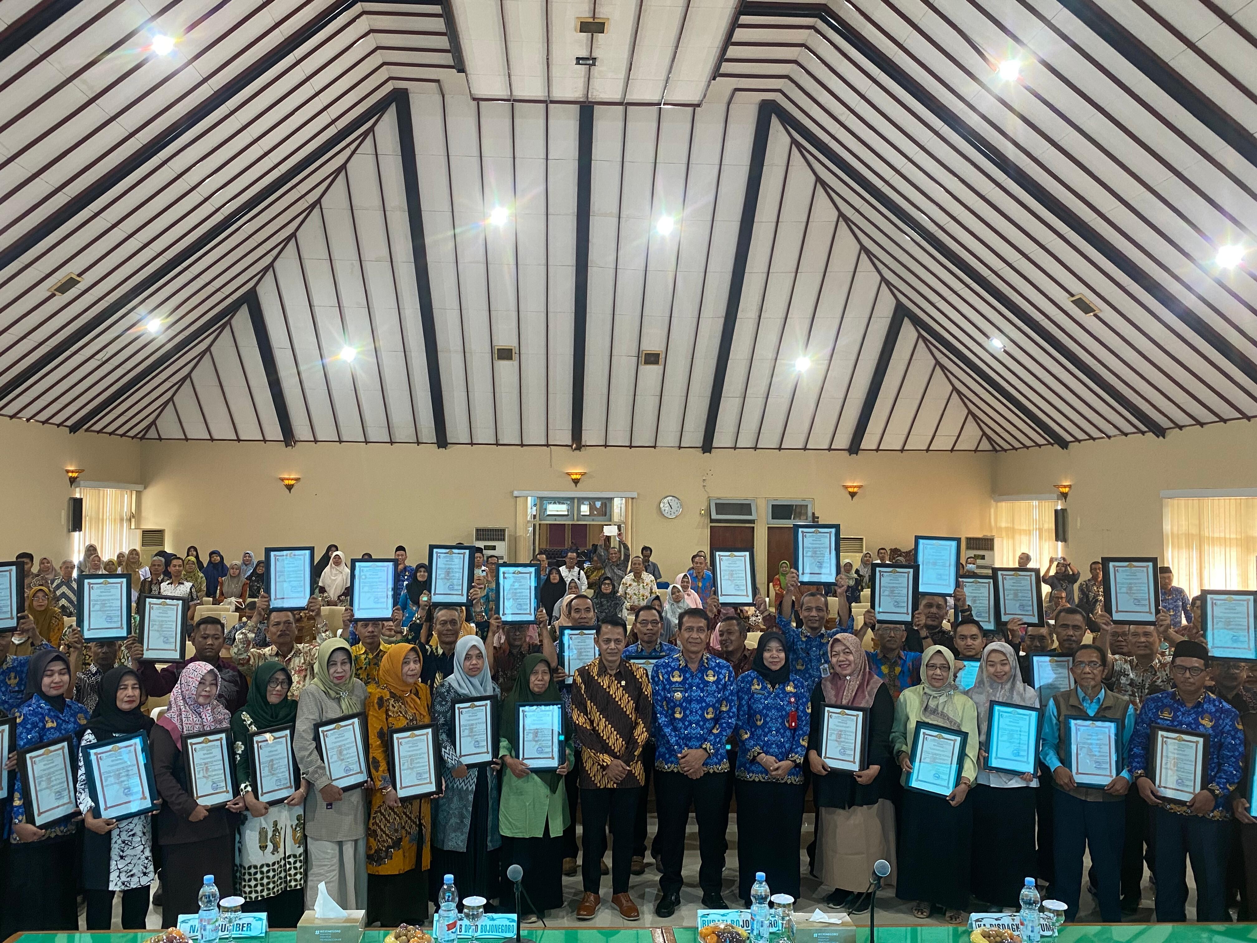 Bupati Bojonegoro Setyo Wahono menyerahkan sertifikat penilaian Koperasi Sehat dalam acara Bimtek, Senin (1/12/2025)/Foto: Aim