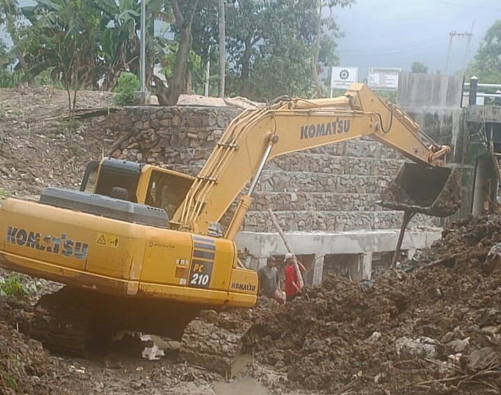 “Hari ini excavator melakukan normalisasi sungai dan juga melakukan pengerukan yang hasilnya diarahkan untuk menguruk tanah yang longsor kemarin,” tambah Wiwik.