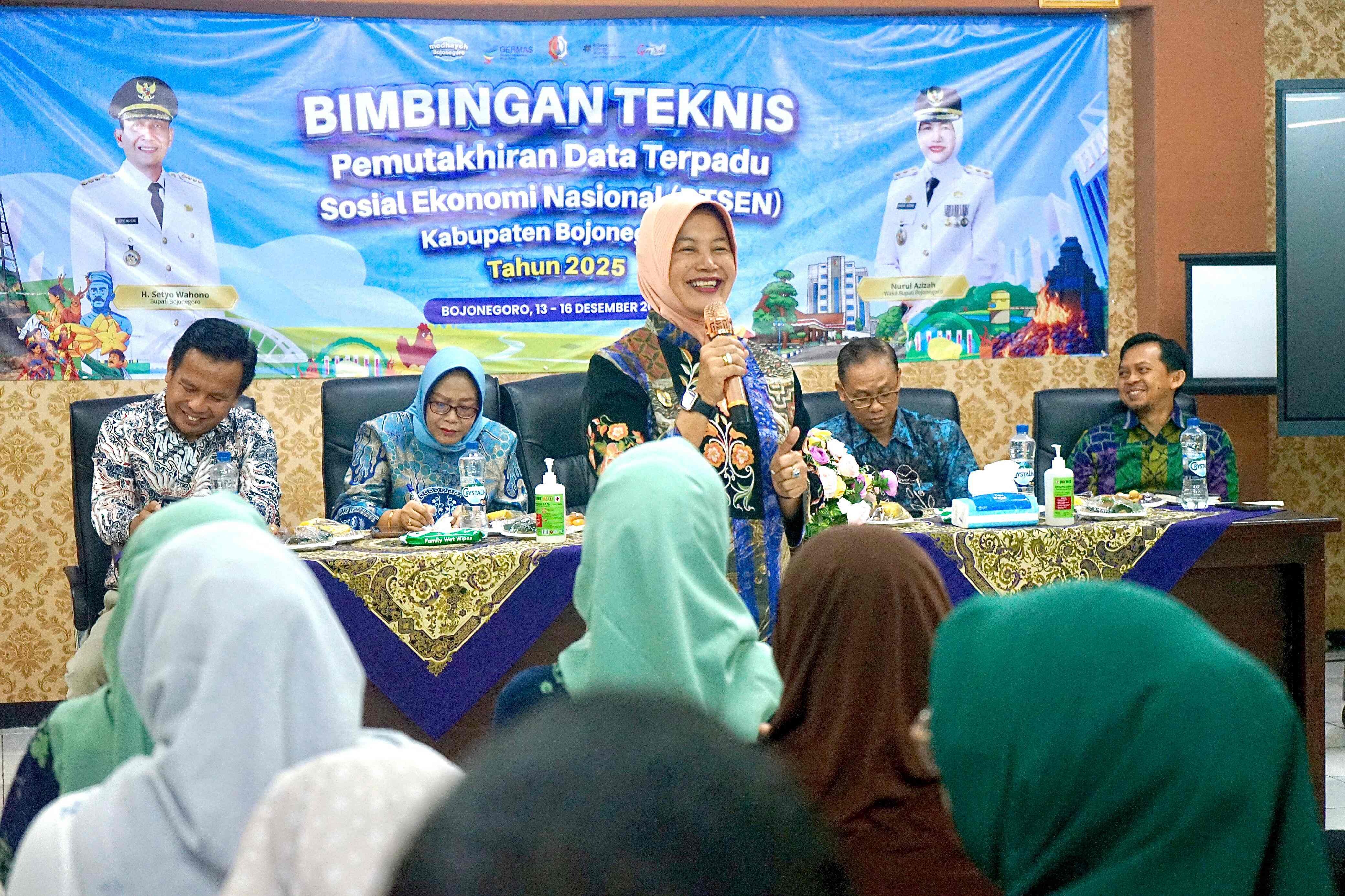 Bojonegorokab.go.id - Pemerintah Kabupaten Bojonegoro menggelar Bimbingan Teknis (Bimtek) Pemutakhiran Data Tunggal Sosial Ekonomi Nasional (DTSEN), Sabtu (13/12/2025), yang dipusatkan di Sekolah Model Terpadu (SMT) Bojonegoro. Kegiatan ini menjadi langkah strategis dalam memperkuat basis data sosial ekonomi yang akurat sebagai fondasi perencanaan dan penyaluran program pembangunan.