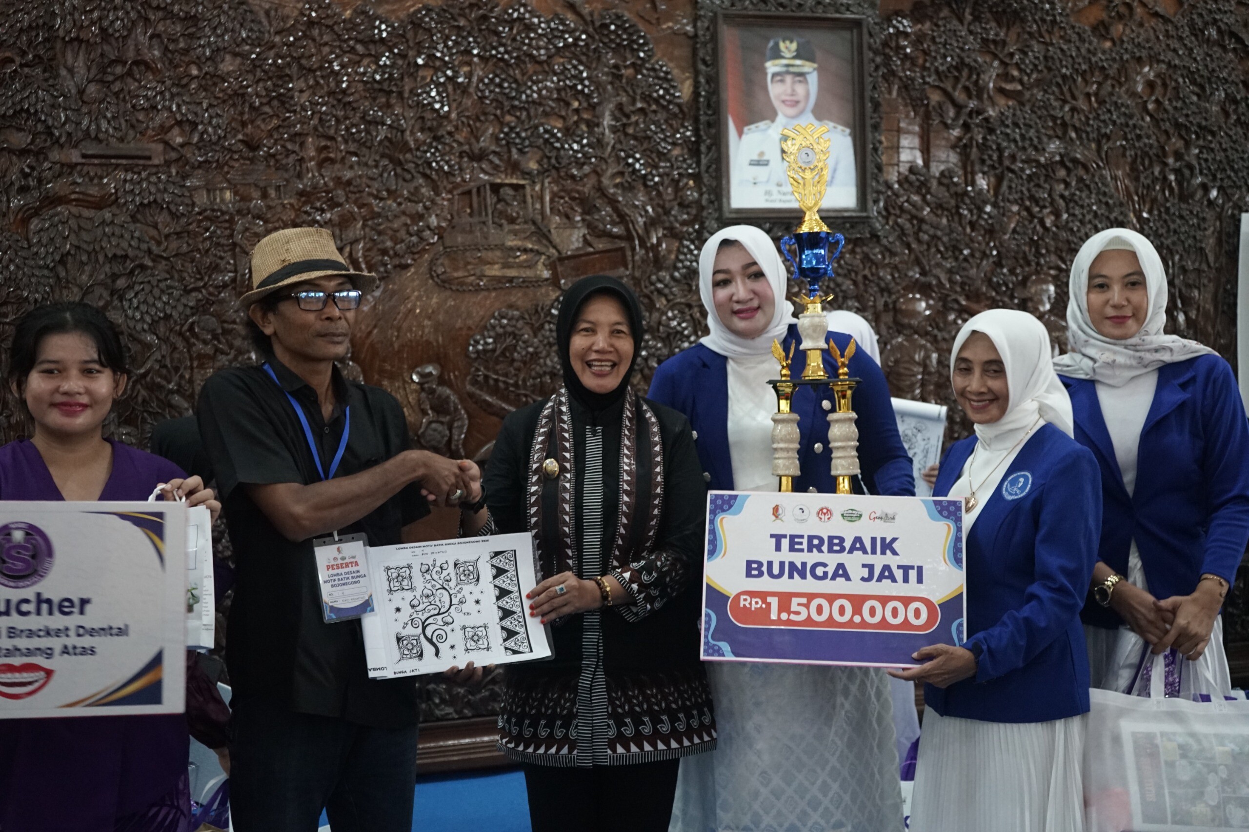 Pada event ini, sejak pagi hari, suasana Pendopo Malowopati memang sedikit berbeda. Puluhan peserta dengan berbagai latar belakang usia terlihat serius menorehkan ide dan imajinasi mereka di atas kertas, merangkai garis dan warna menjadi desain motif batik bunga. Dalam lomba ini, peserta diminta membuat desain batik dengan motif utama bunga dan jati sebagai identitas lokal Bojonegoro, yang dipadukan dengan bunga pilihan seperti bougenville, tabebuya, krisan, dan anggrek. Setelah seluruh karya selesai dibuat, dewan juri langsung melakukan diskusi dan penilaian untuk menentukan desain-desain terbaik yang dinilai paling memungkinkan untuk diaplikasikan ke dalam kain batik.