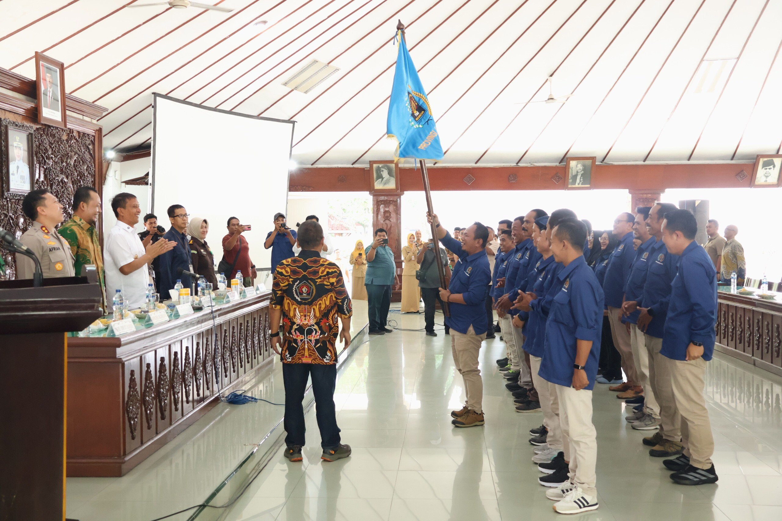 Bojonegorokab.go.id - Bupati Bojonegoro Setyo Wahono beserta jajaran Forkopimda menghadiri pelantikan pengurus Persatuan Wartawan Indonesia (PWI) Kabupaten Bojonegoro masa bhakti 2025-2028. Pelantikan yang dirangkai dengan diskusi panel ini dilaksanakan di Pendopo Malowopati Pemkab Bojonegoro, Selasa (23/12/2025).