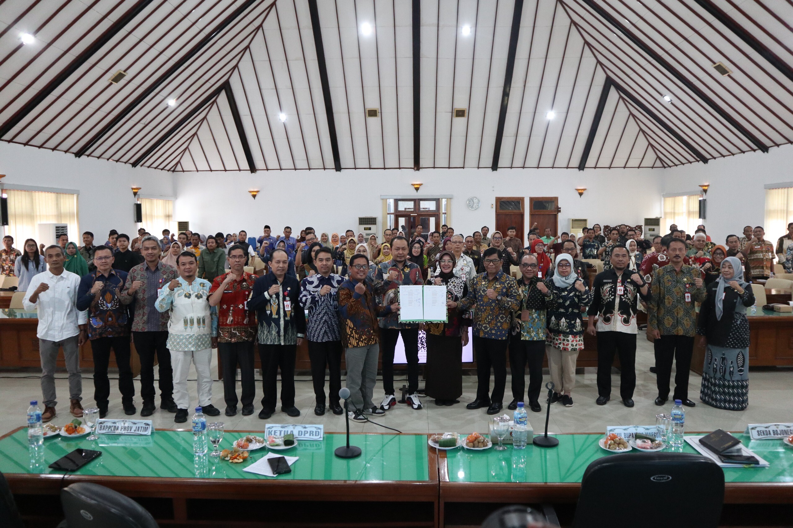 Kegiatan di ruang Angling Dharma Gedung Pemkab Bojonegoro tersebut dihadiri Bupati Bojonegoro Setyo Wahono, Wakil Bupati Nurul Azizah, Sekretaris Daerah, Ketua DPRD Kabupaten Bojonegoro, Sekretaris Dinas Bappeda Provinsi Jawa Timur, Forkopimda, serta sejumlah pemangku kepentingan dan tamu undangan lainnya.