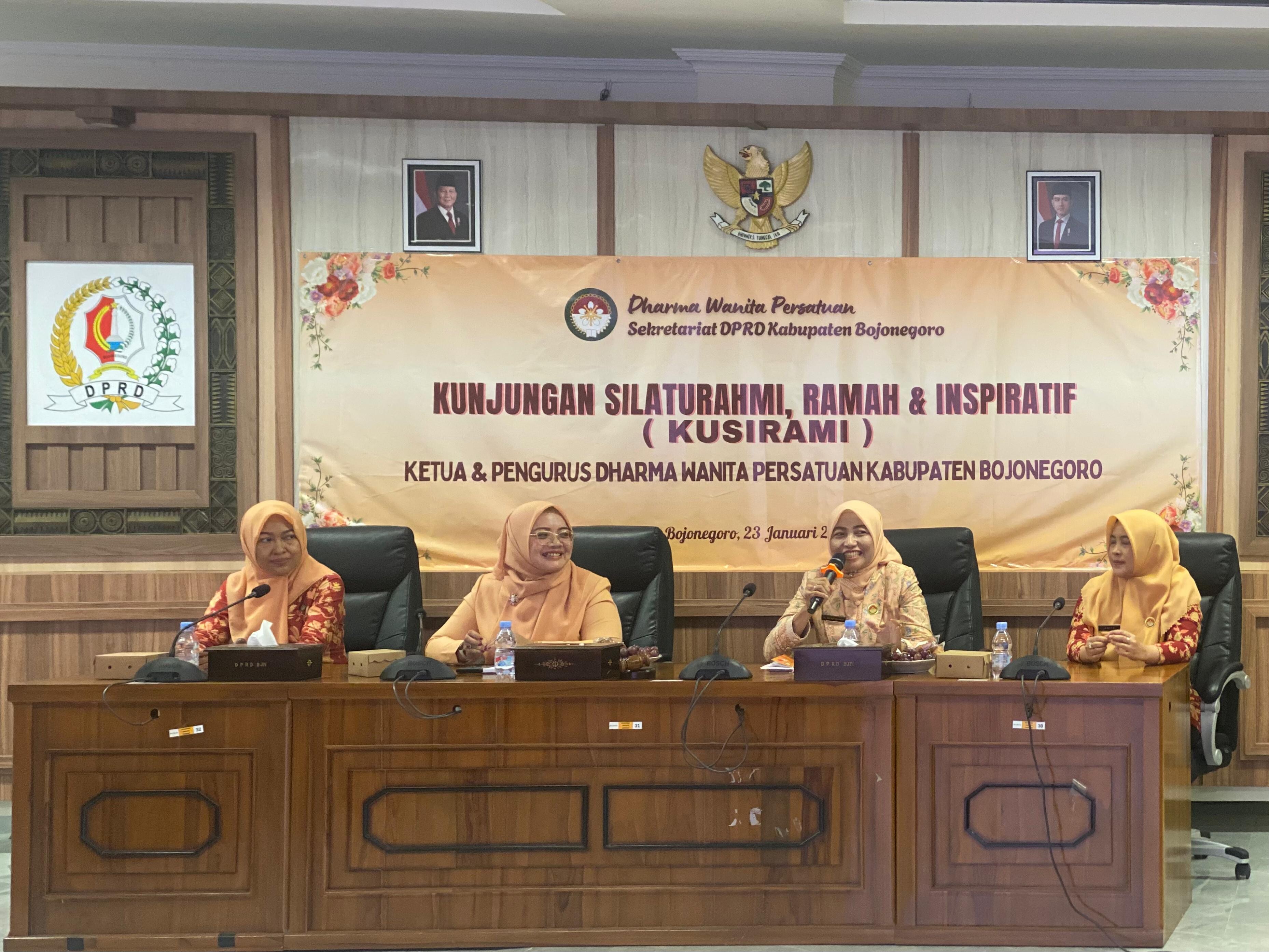 Bojonegorokab.go.id - Dharma Wanita Persatuan (DWP) Kabupaten Bojonegoro berkomitmen untuk ikut mendorong program-program Pemkab Bojonegoro. Beberapa kegiatan telah dilakukan, diantaranya lewat program Kunjungan Silaturahmi dan Inspirasi (KUSIRAMI) yang digelar Jumat (23/1/2026) bertempat di Gedung DPRD Kabupaten Bojonegoro.