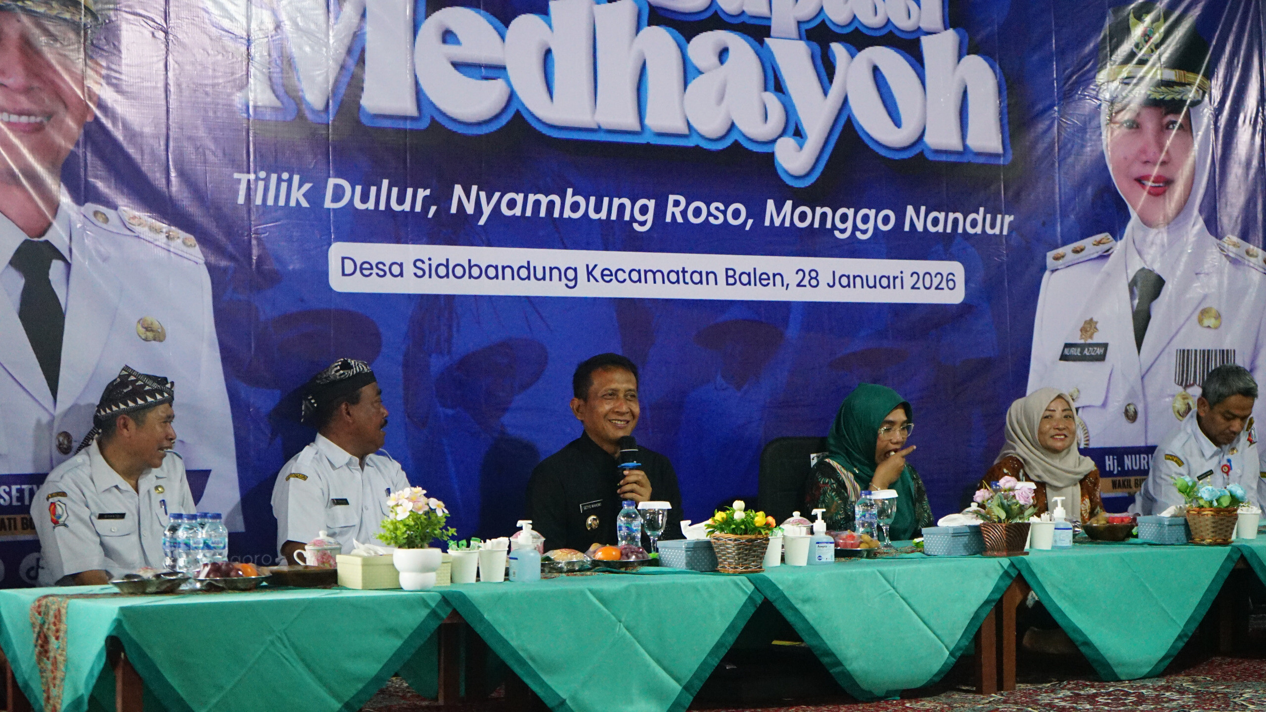Kegiatan Bupati Medhayoh diawali dengan meninjau langsung proyek pengecoran jalan di Desa Mulyoagung, Kecamatan Balen. Lalu dilanjutkan ke Desa Sobontoro (Kecamatan Balen), di mana suasana kekeluargaan sangat kental terasa saat Bupati dan Wakil Bupati duduk bersama kelompok tani di bawah pohon beringin yang teduh. Diskusi berfokus pada strategi meningkatkan ketahanan pangan dan produksi padi.