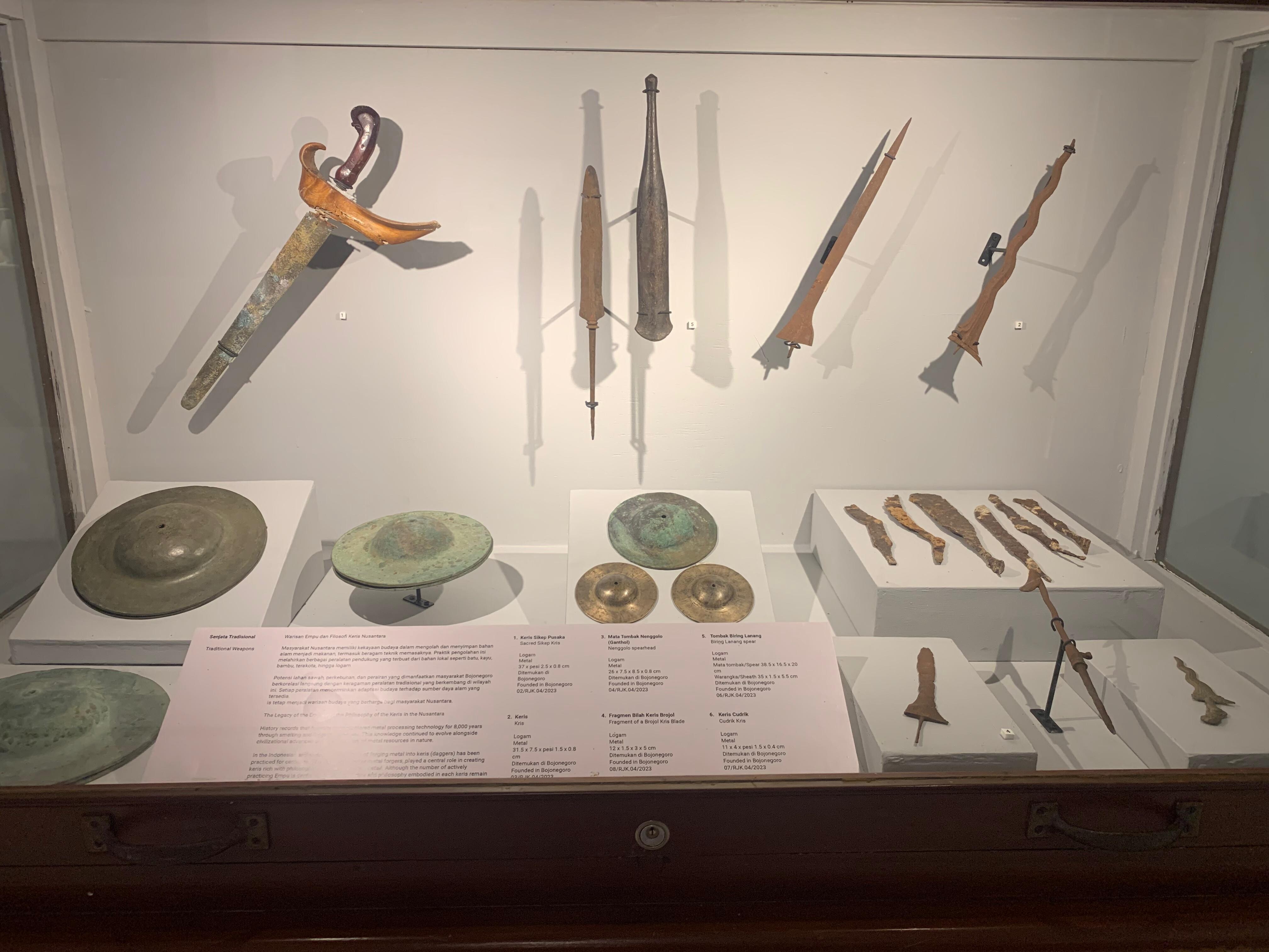 Pengalaman berlanjut di ruang 3 yakni ruang etnografi. Lesung padi panjang di tengah ruangan langsung mencuri perhatian dan mencerminkan kehidupan agraris masyarakat Bojonegoro. Di sekelilingnya, alat musik tradisional, teknologi pertanian, serta senjata tradisional dipamerkan sebagai gambaran kearifan lokal yang diwariskan lintas generasi.