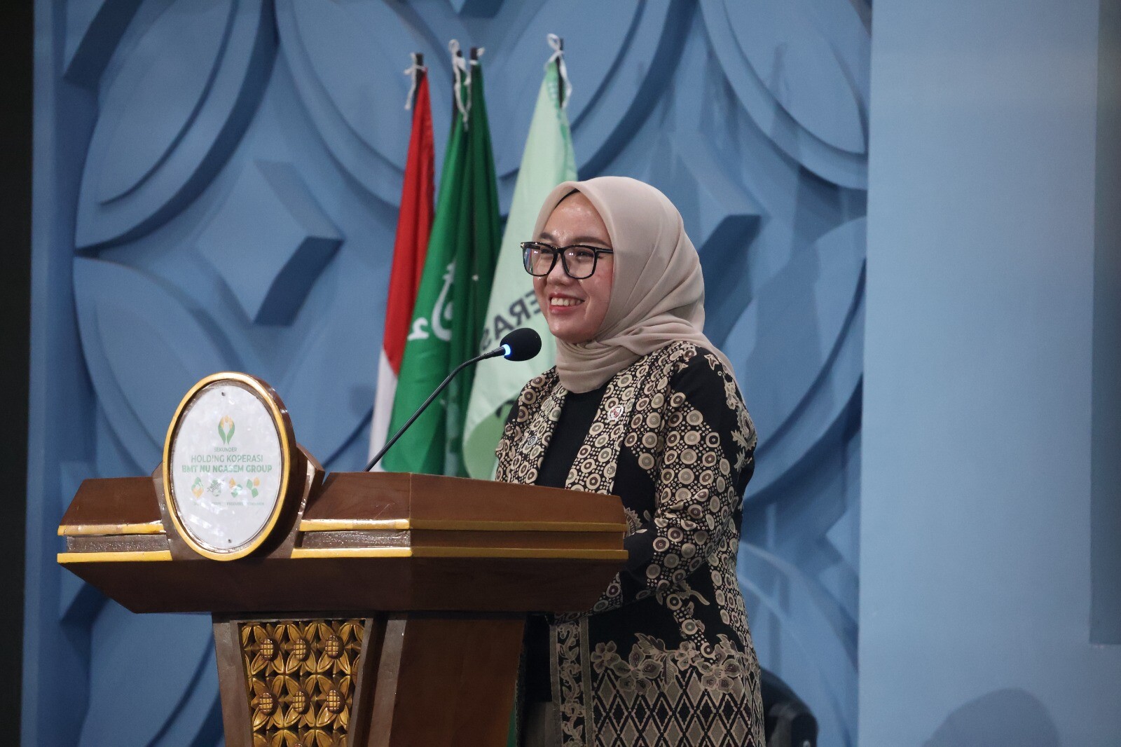 Bojonegorokab.go.id - Wakil Bupati Bojonegoro mendapingi Wakil Menteri Koperasi Republik Indonesia Farida Farichah hadir di acara Rapat Anggota Tahunan Holding Koperasi BMT NU Ngasem Tahun Buku 2025, Minggu (8/2/2026). Kegiatan yang digelar di Ballroom KH Hasyim Asyari BMT NU Ngasem Kecamatan Ngasem itu juga makin lengkap dengan launching buku Transformasi Koperasi Modern.