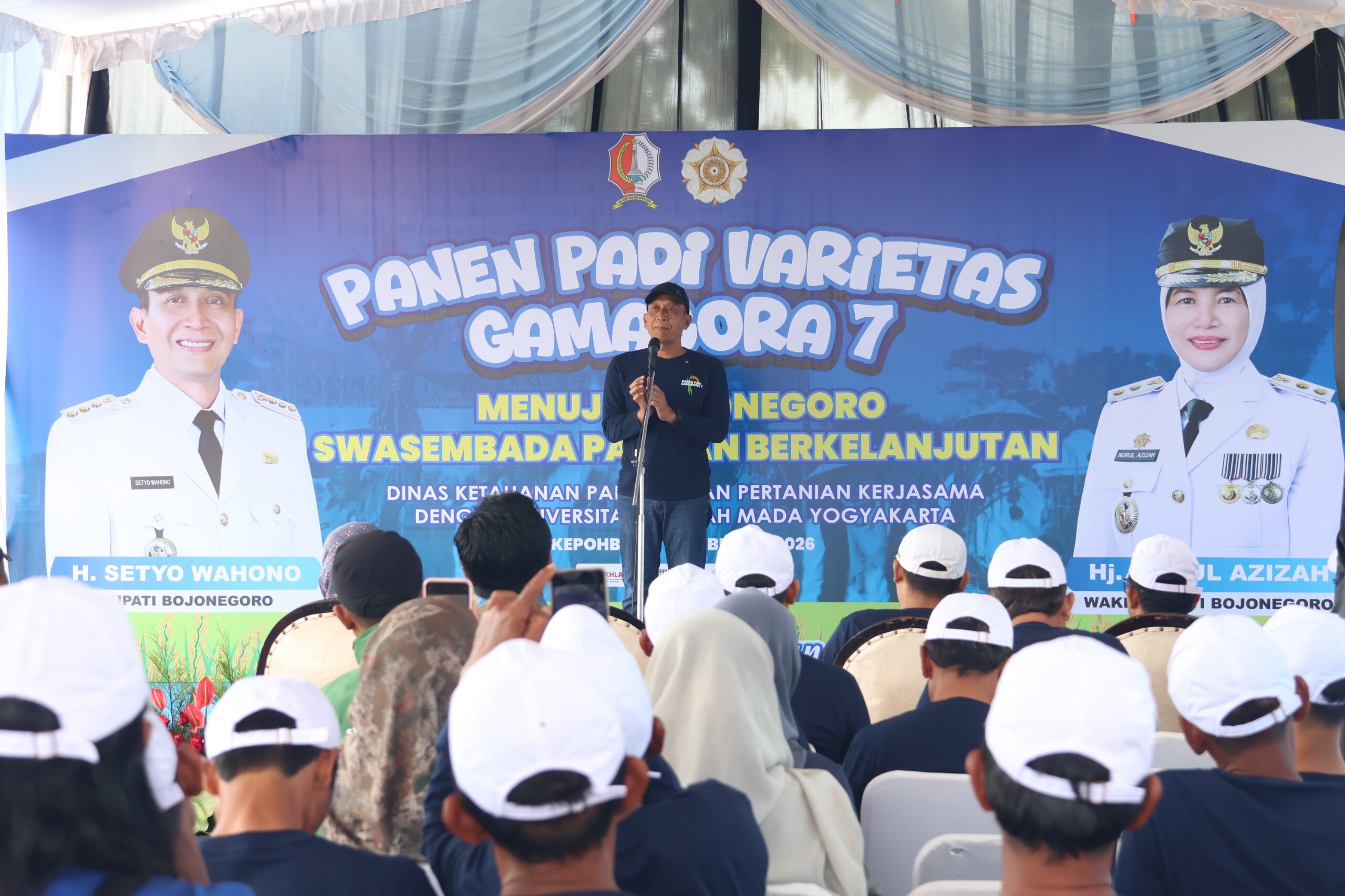 Kegiatan bertema “Menuju Bojonegoro Swasembada Pangan Berkelanjutan” ini merupakan kolaborasi antara Dinas Ketahanan Pangan dan Pertanian (DKPP) Kabupaten Bojonegoro dan Universitas Gadjah Mada (UGM) Yogyakarta sebagai langkah strategis dalam menjaga sekaligus meningkatkan produktivitas pertanian di tengah tantangan perubahan iklim.