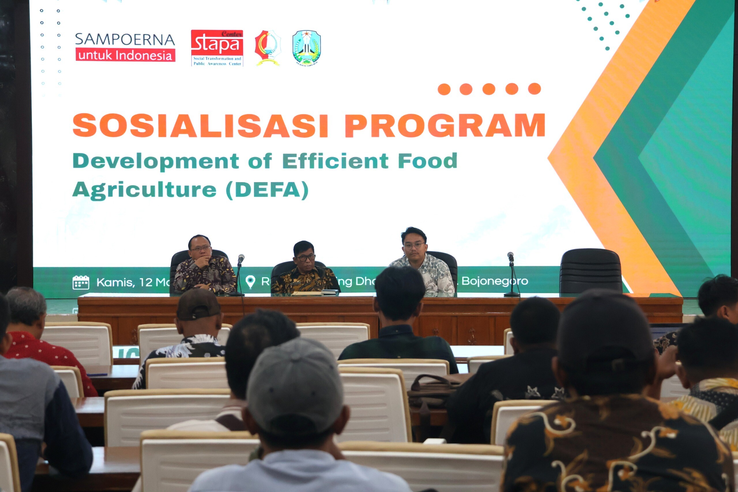 Bojonegorokab.go.id - Pemerintah Kabupaten Bojonegoro belerjasama dengan PT HM Sampoerna juga STAPA Center menggelar sosialisasi program Development of Efficient Food Agriculture (DEFA), Kamis (12/03/2026). Kegiatan digelar mulai pukul 09.00 WIB di Gedung Angling Dharma, Kantor Pemkab Bojonegoro.