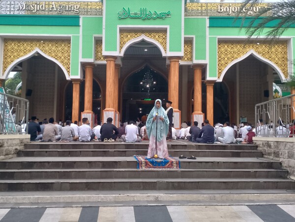 Suasana penuh kehangatan terasa saat Wabup Nurul Azizah selepas shalat berjamaah melanjutkan bersalaman dan bermaaf-maafan dengan para jamaah.[*]