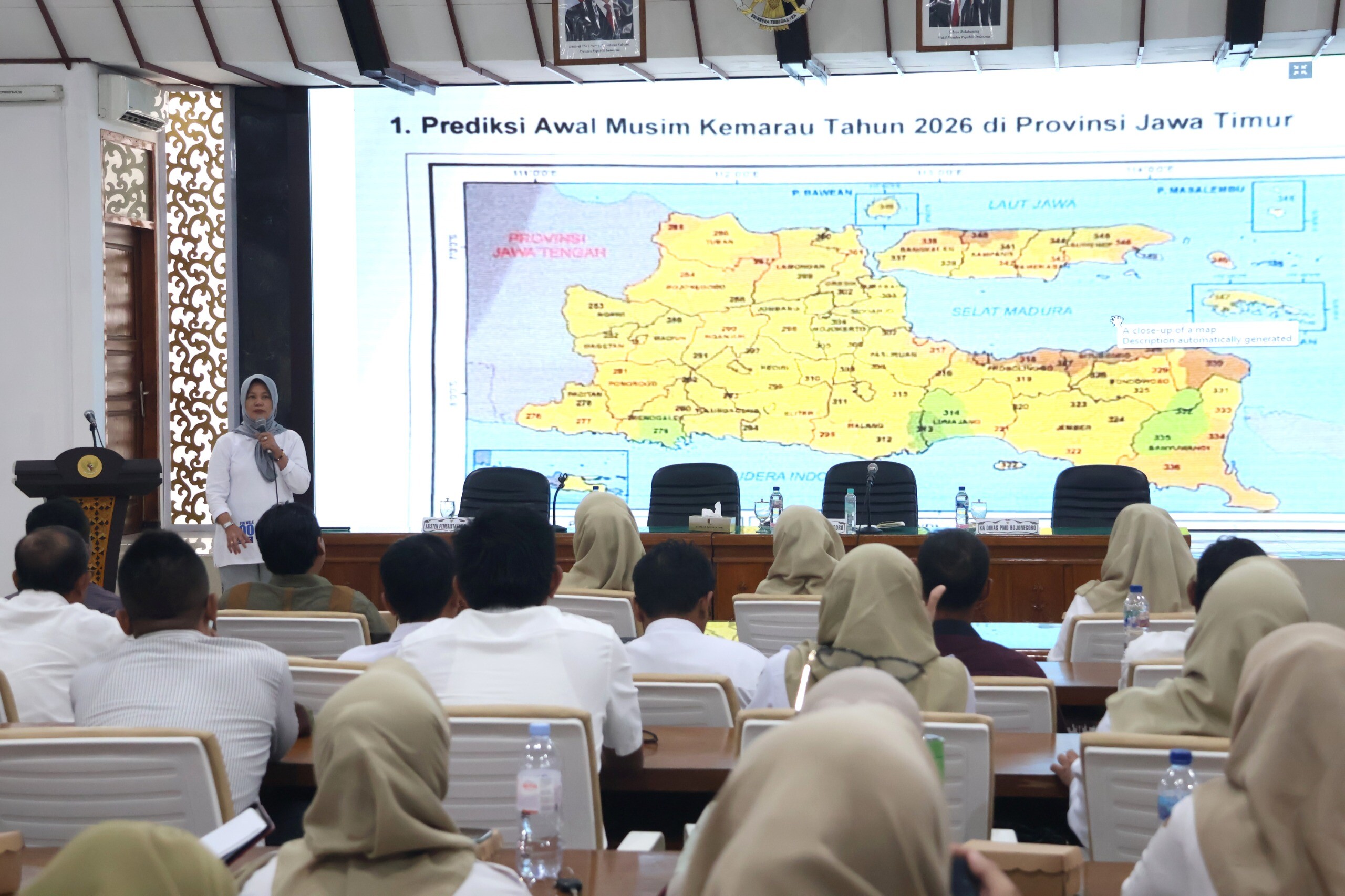 Dalam kesempatan yang sama, Wakil Bupati Bojonegoro Nurul Azizah, memaparkan tantangan geopolitik internasional, mulai dari perubahan iklim hingga persaingan kecerdasan buatan (AI) serta ketahanan energi.