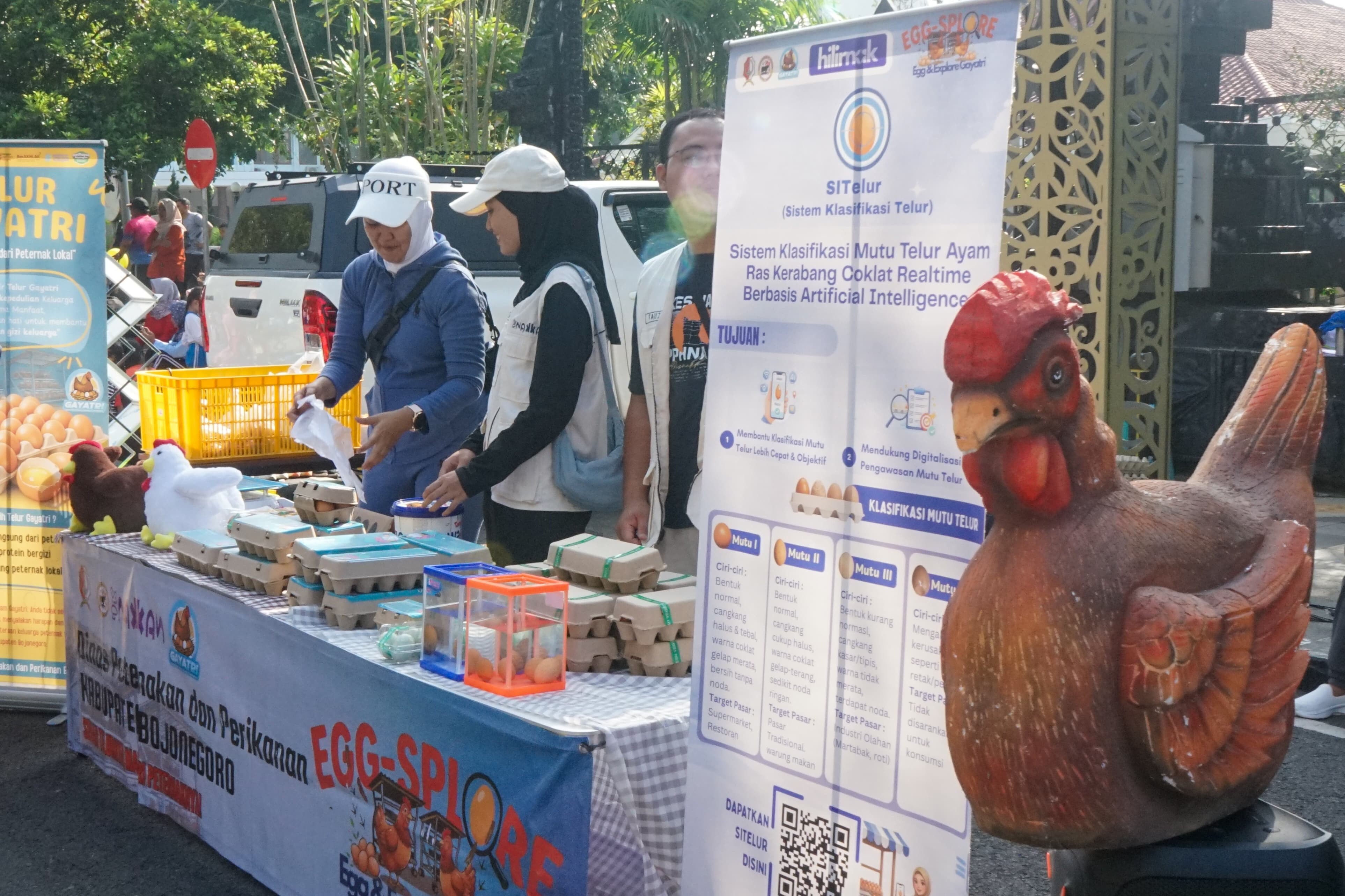 "Bapak, Ibu, ini telurnya masih sangat fresh, harganya terjangkau, dan yang paling penting ini adalah produk lokal kita sendiri, bagian dari program Bapak Bupati. Mari kita dukung dan sukseskan bersama demi kesehatan keluarga kita!", seru Nurul Azizah di hadapan pengunjung CFD.