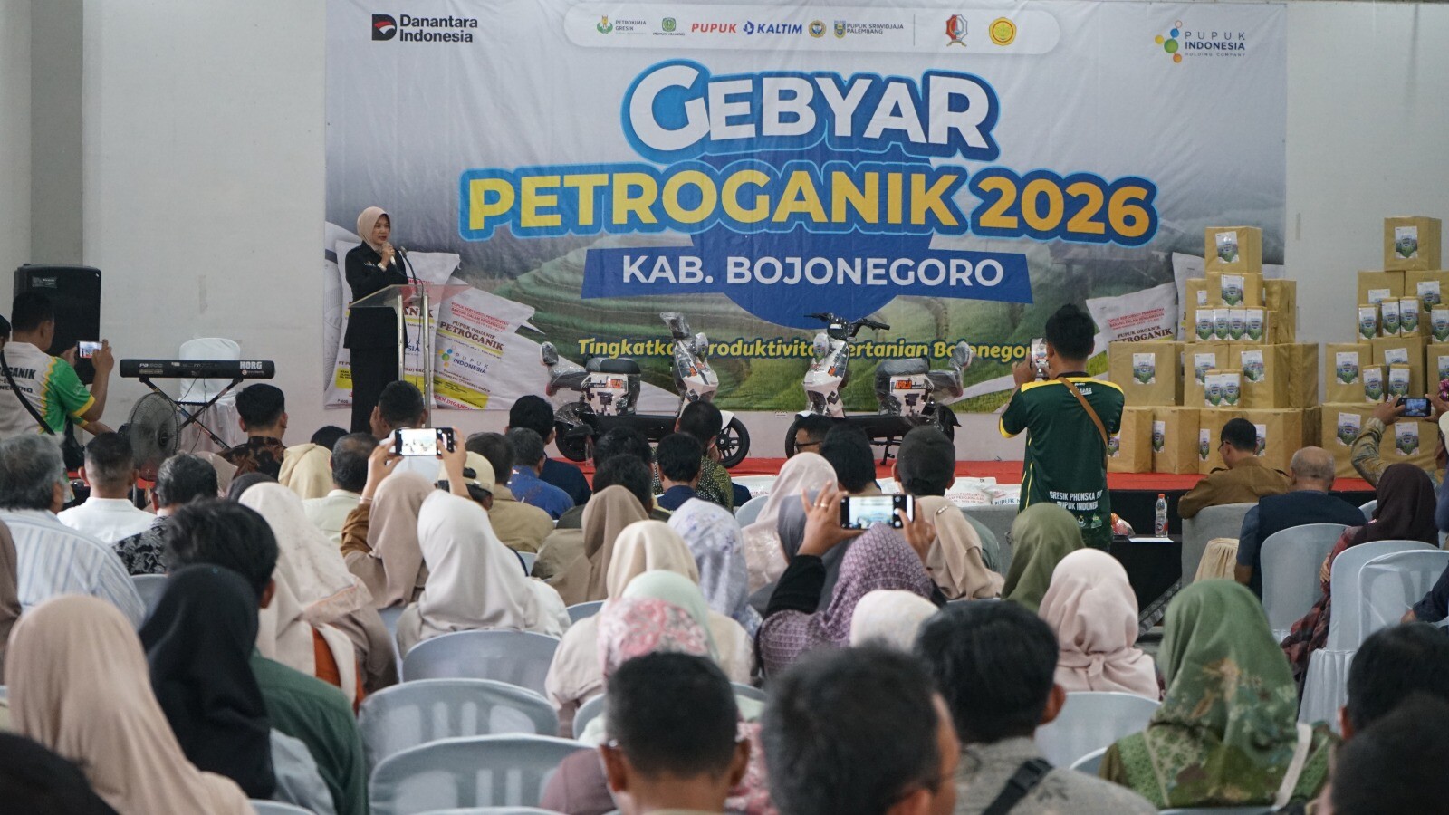 Acara yang berlangsung pada Selasa (28/04/2026) di Gedung Serbaguna Baresta, Jl. Monginsidi ini, menjadi momentum apresiasi bagi para petani dan distributor yang telah berkomitmen menjaga kualitas lahan pertanian di wilayah setempat. Di 2026, berdasarkan data Dinas Ketahanan Pangan dan Pertanian (DKPP), Bojonegoro mendapat alokasi bantuan pupuk organik sebanyak 13.948 ton.