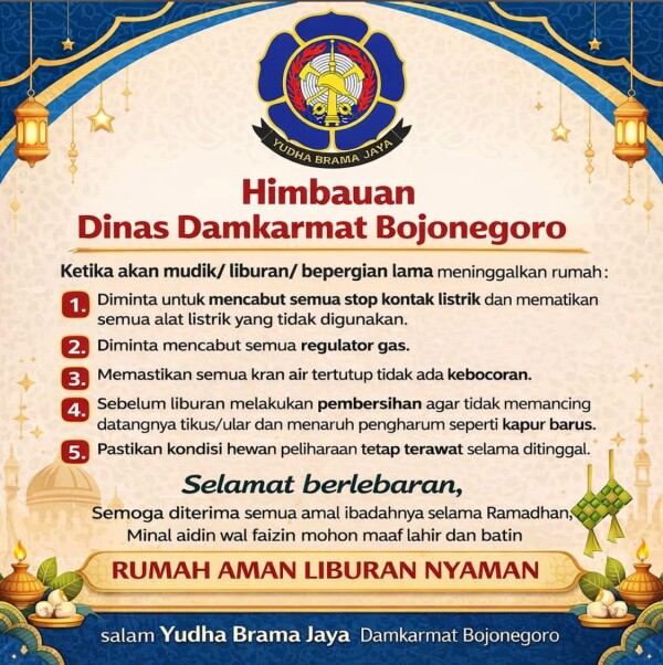 Dinas Damkarmat Bojonegoro Imbau Warga Pastikan Keamanan Rumah Sebelum Bepergian saat Lebaran