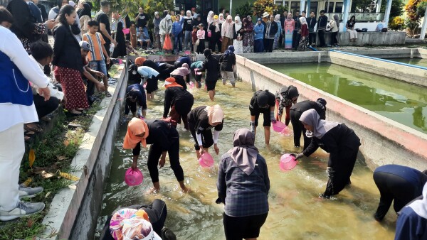 Peringati Hari Ibu, Puluhan Ibu di Bojonegoro Antusias Ikuti Lomba Menangkap Ikan