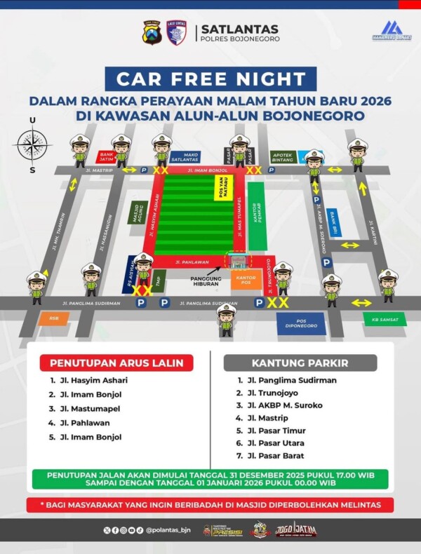 Pemkab Bojonegoro Bersama Polres Siapkan Rekayasa Lalu Lintas Car Free Night Malam Tahun Baru 2026