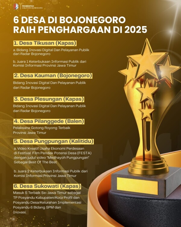 Selalu Inovatif dalam Pelayanan, 6 Desa di Bojonegoro Raih Prestasi Membanggakan di 2025