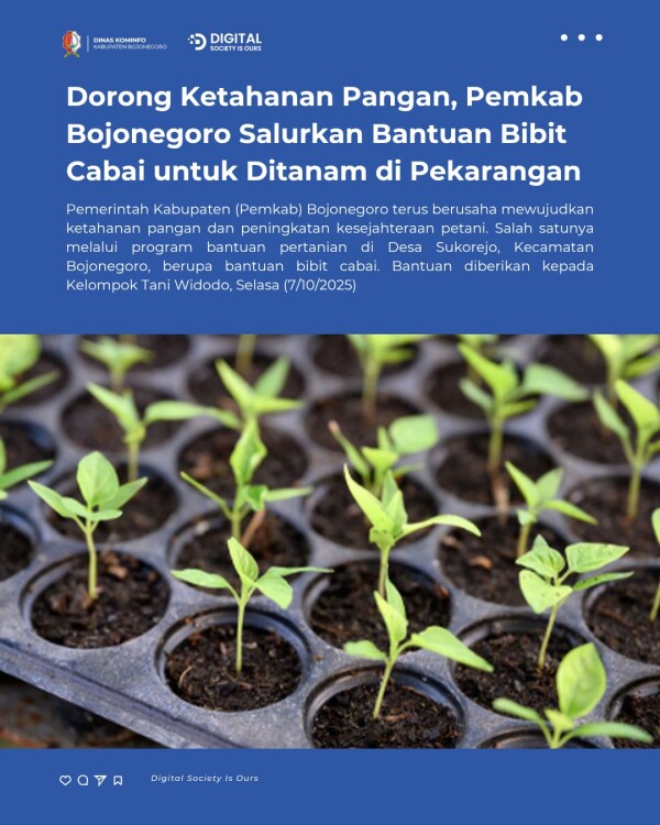 Dorong Ketahanan Pangan, Pemkab Bojonegoro Salurkan Bantuan Bibit Cabai untuk Ditanam di Pekarangan