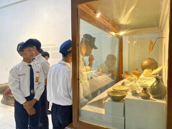 Para siswa berkunjung dan mengamati koleksi Museum Rajekwesi Bojonegoro