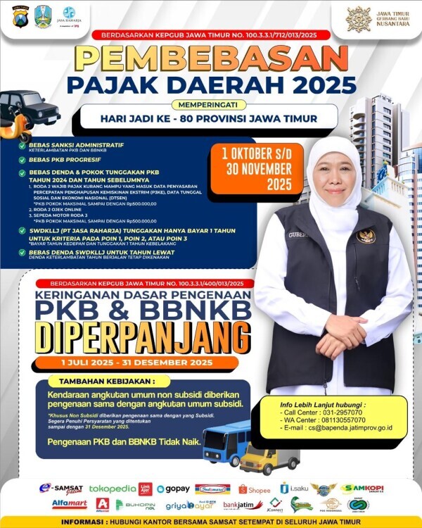 Pemprov Jatim Perpanjang Keringanan Pajak Kendaraan Bermotor