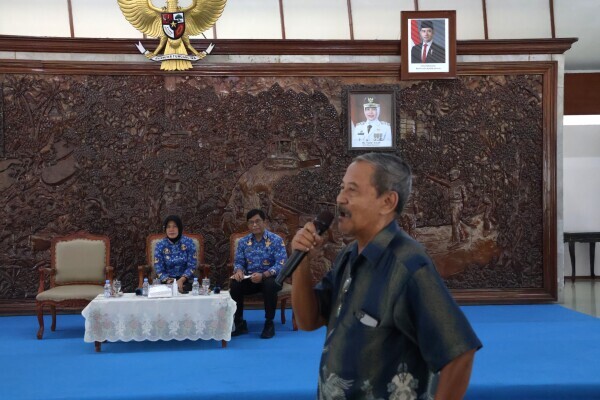 Salah satu warga saat menyampaikan aspirasi di SAPA BUPATI di Pendopo Malowopati Pemkab Bojonegoro