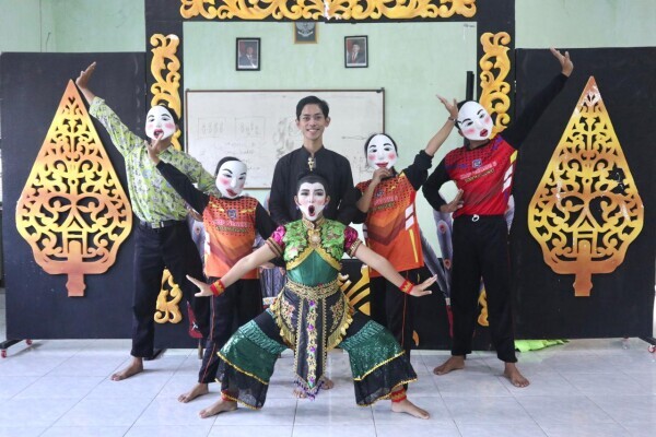 Anang Setyawan, guru SMPN 5 Bojonegoro bersama murid tarinya sedang berlatih