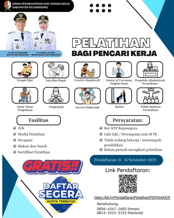 Pemkab Bojonegoro Buka Pendaftaran Pelatihan Bagi Pencari Kerja